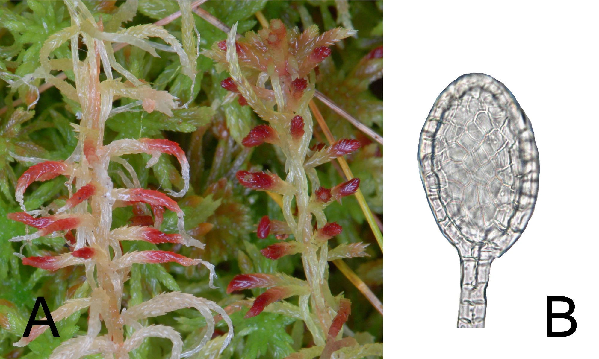 Bladformet protonema og små sporer som ikke har spiret.